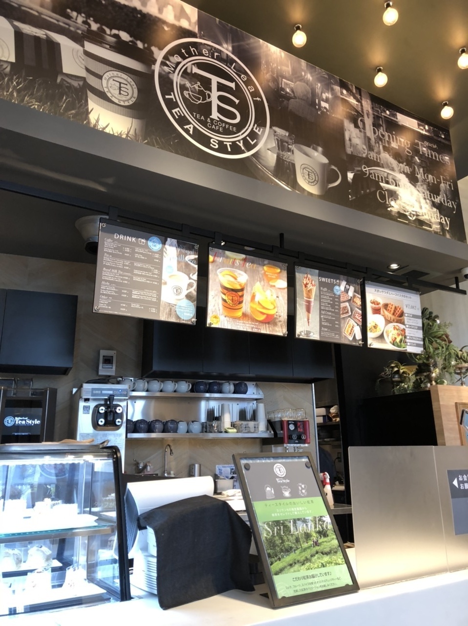 JR桜木町駅のロータリーを渡った目の前にあるクロスゲートに、マザーリーフティースタイルが入っています。モスプレミアムと同じ空間に併設されているのですが、外からはパっと見モスのほうが目立っています。中では右と左でエリアがわかれており、こちらのマザーリーフでは紅茶のメニューや軽食がいただけます。モスメニューと両方頼めるのもなかなか良いです。