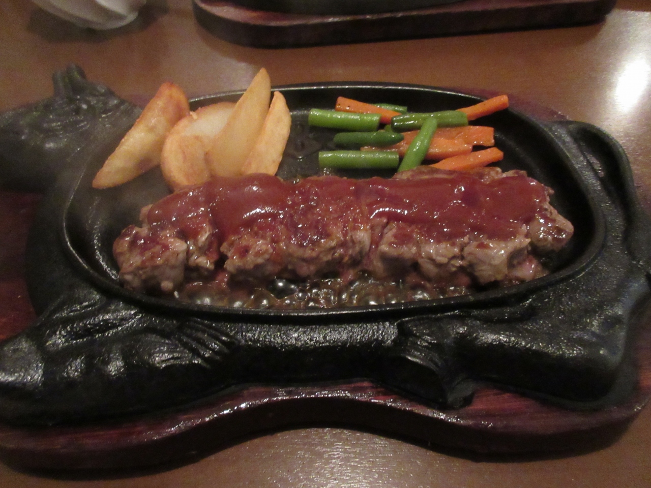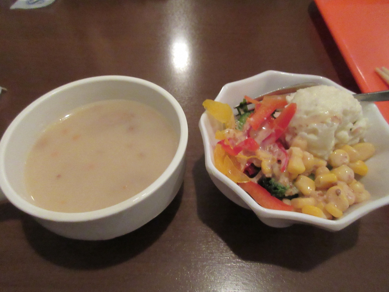 私たちは赤肉ステーキ200ℊにしました。スープ、サラダ、シャーベットが付いています。