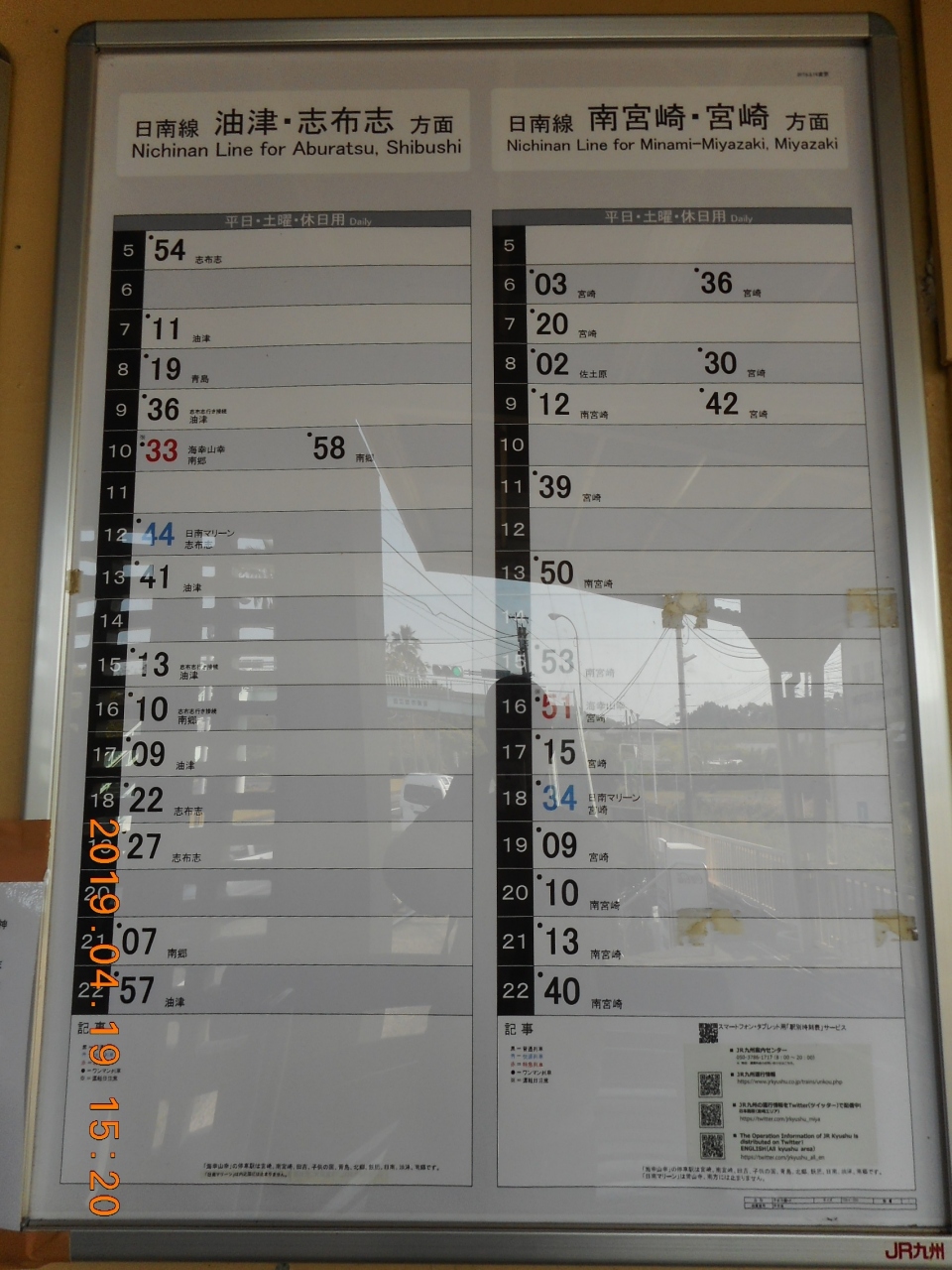 宮崎ブーゲンビリア空港にあるJR宮崎空港線を田吉駅で乗り換えて日南線で子供の国駅に着きました。正直言って「えっ!」という感じの駅でした。有名な観光地の青島への鉄道の玄関口の青島駅ではないけど、こどもの国の最寄り駅なのでもっと大きな駅だと勝手に思ってました。