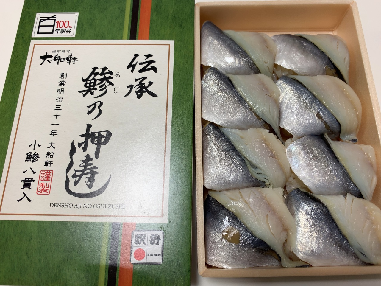 今回は大船軒の伝承鯵の押寿しを購入。この強めの酢の利き具合、これこれこれよー。