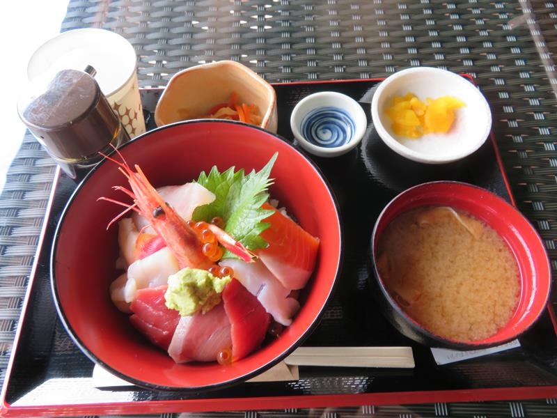 元気丼という名の海鮮丼を食べました。お刺身が何種類も載っていて味噌汁とお新香もついて1350円とリーズナブル。