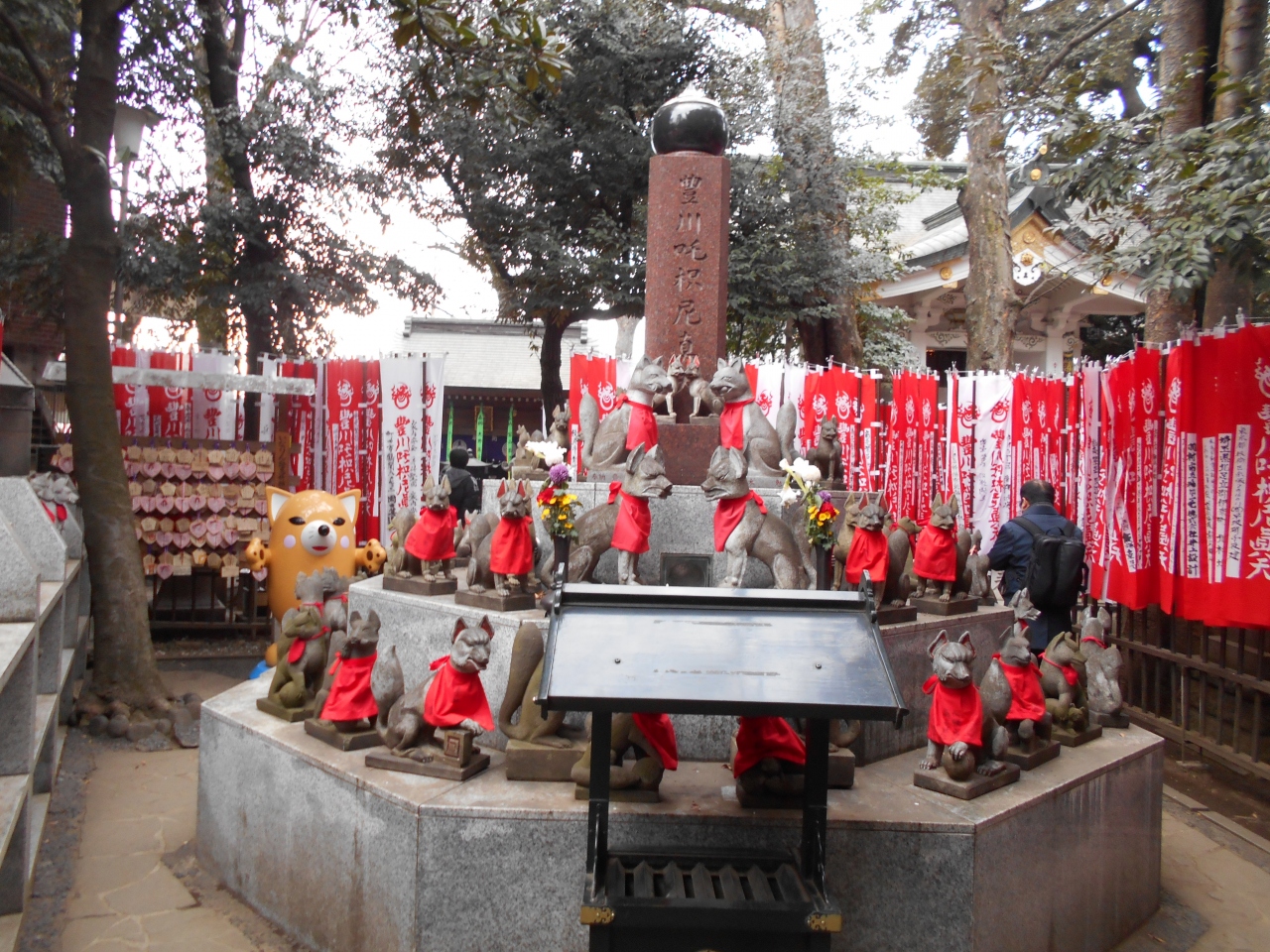 大岡越前守忠相が豊川稲荷から吒枳尼天を勧請し、自宅に祀ったのを由来とするそうです。1887年、現在地に移転遷座し、豊川稲荷の別院となったそうです。商売繁盛、家内安全、福徳開運の神として庶民の信仰を集めています。境内には眷属である狐の置物を納めた霊狐塚があり、多くの寄進された大小様々な狐が並んでいます。