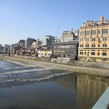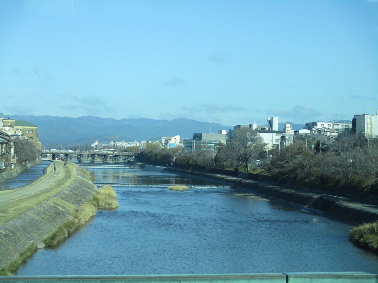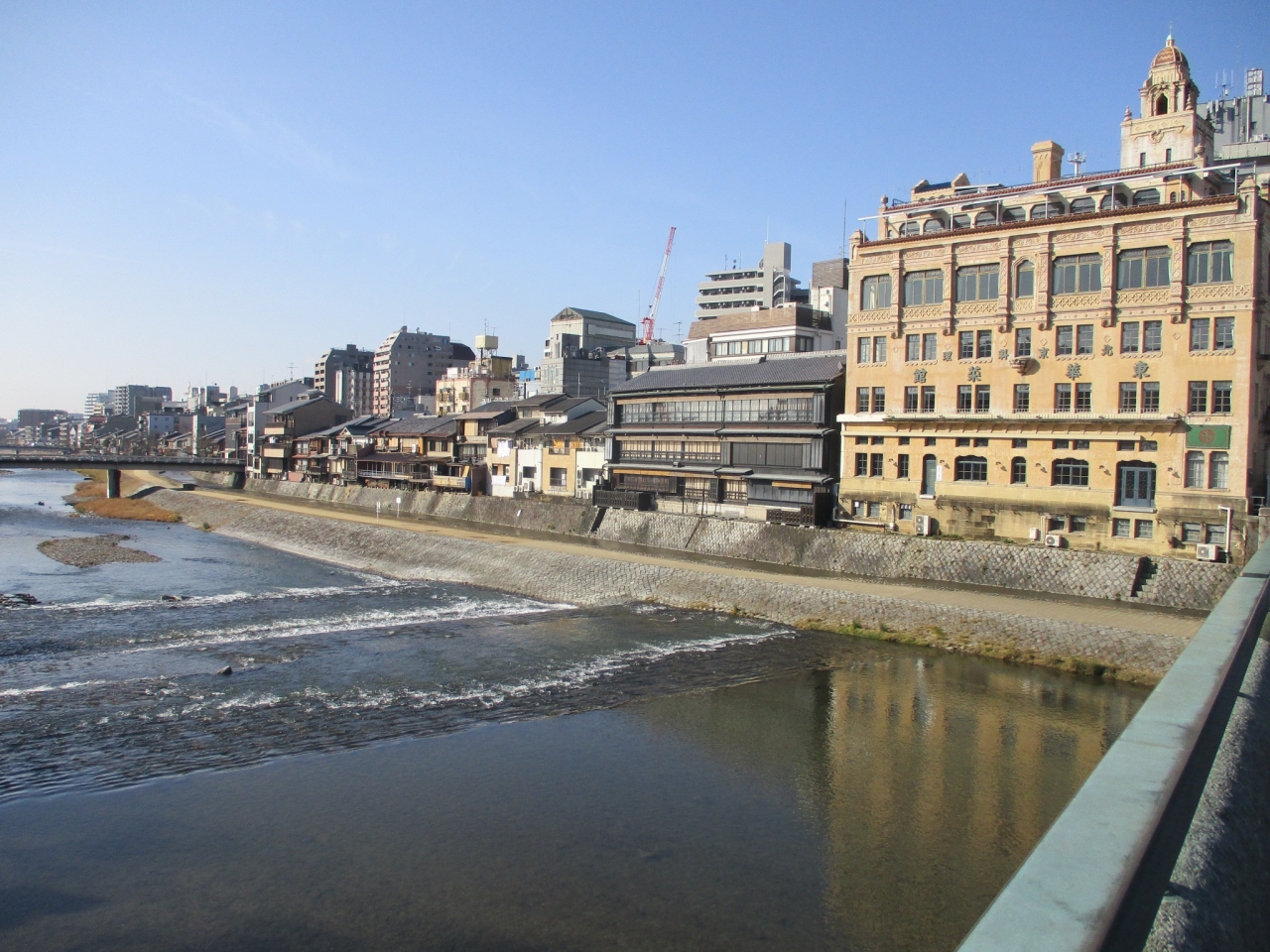 この冬の四条大橋。人通りが少なく、とても歩きやすかったです。普段なら人でごった返しているのに静かで驚きました。ここから見る鴨川の景色が有名です。川沿いを散歩している人の姿が見えました。川の流れもゆっくりに見えました。