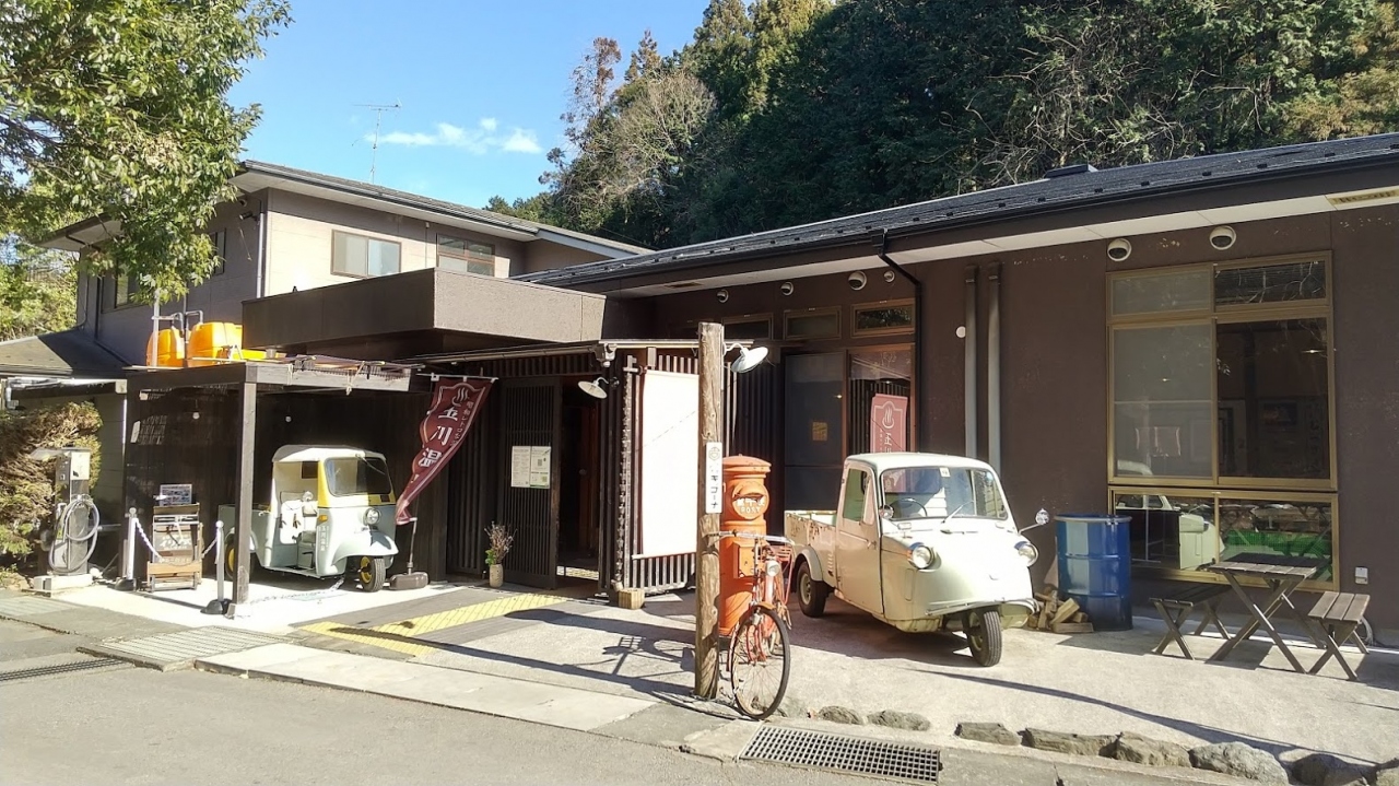 ときがわ町にある小規模な日帰り温泉で、昭和レトロを売り物にしているので、施設内は昭和的な看板や置物、土産物がいっぱいです。