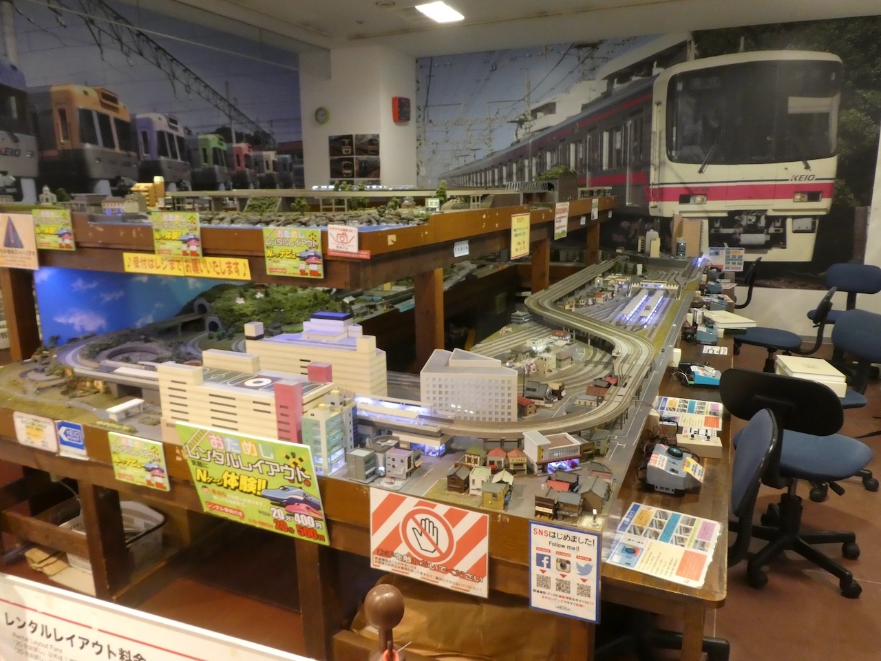 京王線の京王八王子駅はJR線の八王子駅から徒歩5分の距離。独自の駅位置のまま駅ビルができています。改札直結なので便利です。地下駅の上なのであまり幅がなく、奥行きも思ったほどなく各フロアはコンパクトですがその分高く11階まであります。5階に鉄道ショップがあってけっこう大きなジオラマがあり、ここで買い物すると運転できるシステムのようです。10階のレストランで食事しましたが高校生や大学生などの若い人が多い印象でした。