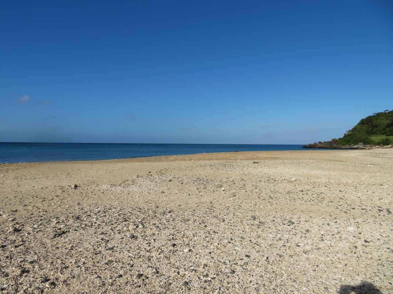 イーフビーチからほど近い小さな岬に囲まれたビーチです。砂浜ではなく、サンゴや貝殻、小石がごろごろなので裸足では歩けず、海水浴には適さないかもしれません。久米島一のサンセットビーチと言われているので、夕日を見るために行くのが良いのかも。浜は奥行きがあって景観は良いです。