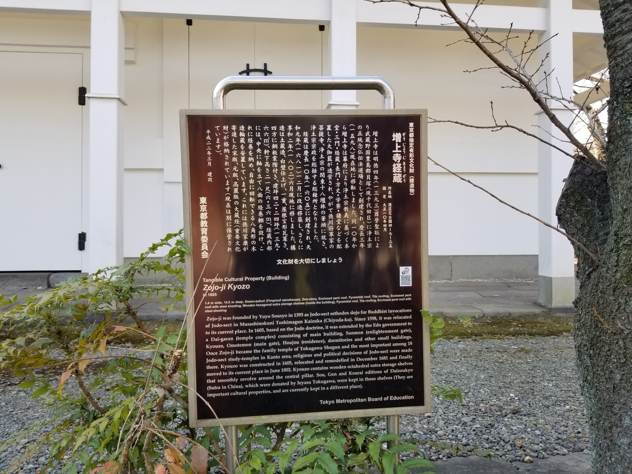 東京都指定有形文化財の増上寺経蔵は増上寺にある。