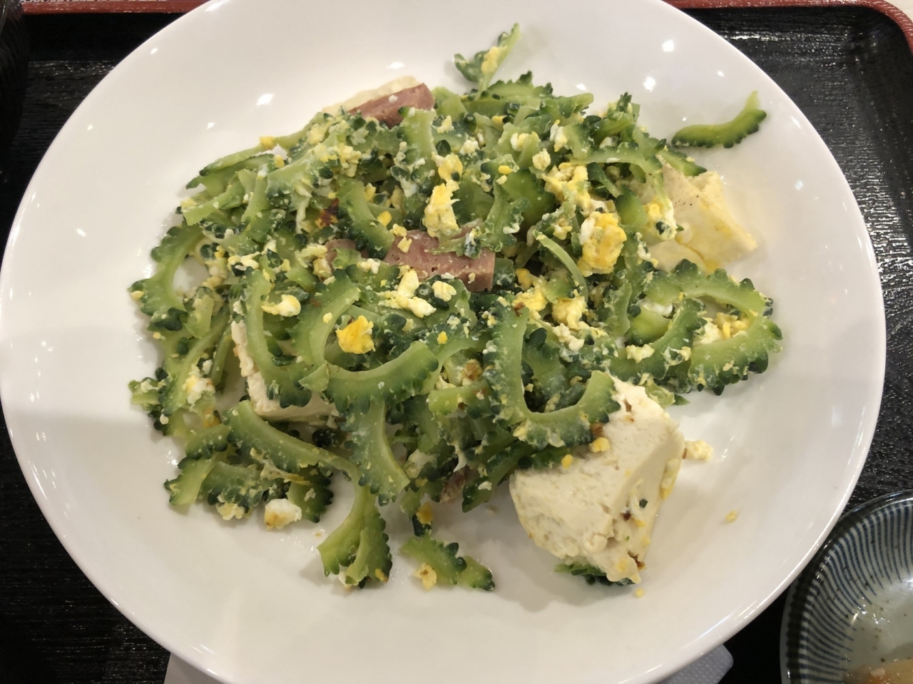沖縄そば目当てで行ったものの、油を使わないゴーヤちゃんプル定食が気になり、こちらをオーダー。油を使わない分、ゴーヤがシャキシャキしており、スパムから適度な油も出ているのでパサパサと言うこともなく美味でヘルシー。スープ代わりの沖縄そばも出汁が効いていて美味。でも次回はぜんざいかな。