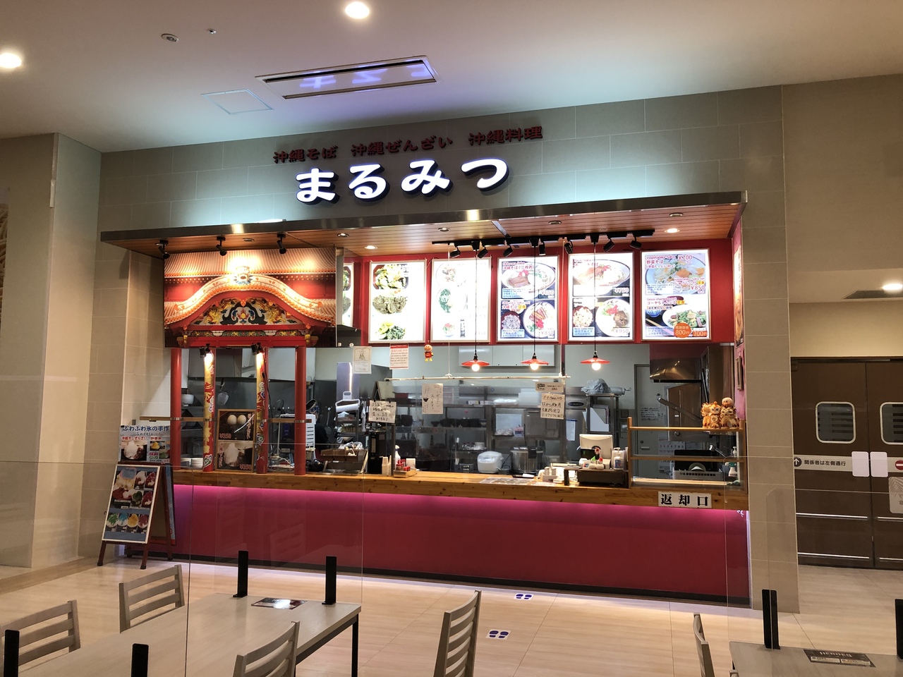 イオンモール沖縄ライカムの唯一の沖縄そばのお店。イオンモール沖縄ライカムのレストランは、全国の有名店が多い分、沖縄料理のお店が少なく、このお店は貴重。ぜんざいで有名な糸満市のまるみつがやっており、沖縄そばの他に定食もの、丼もの、さらにはぜんざいなどがある。