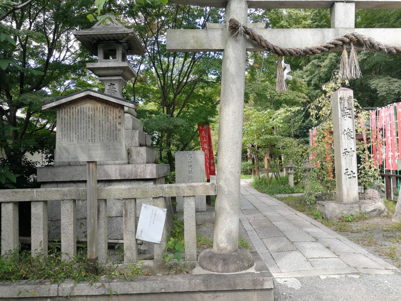境内には、京都観光神社などもありました。この地は花山院家邸跡にあたるそうで、それを示す石碑も鳥居近くにありました。
