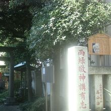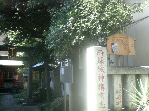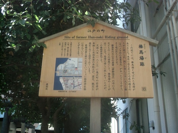 両国駅A5出口から南西へ約80m、榛稲荷神社の境内に説明板があります。