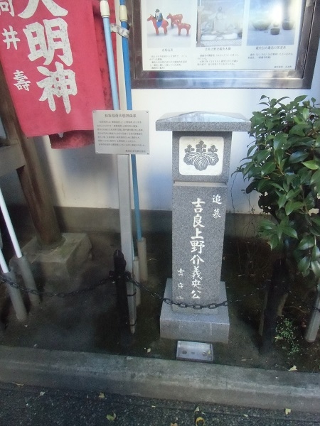 吉良上野介の像、吉良の首洗い井戸、吉良家臣21士碑やパネルなど、狭い敷地に見どこ満載です。