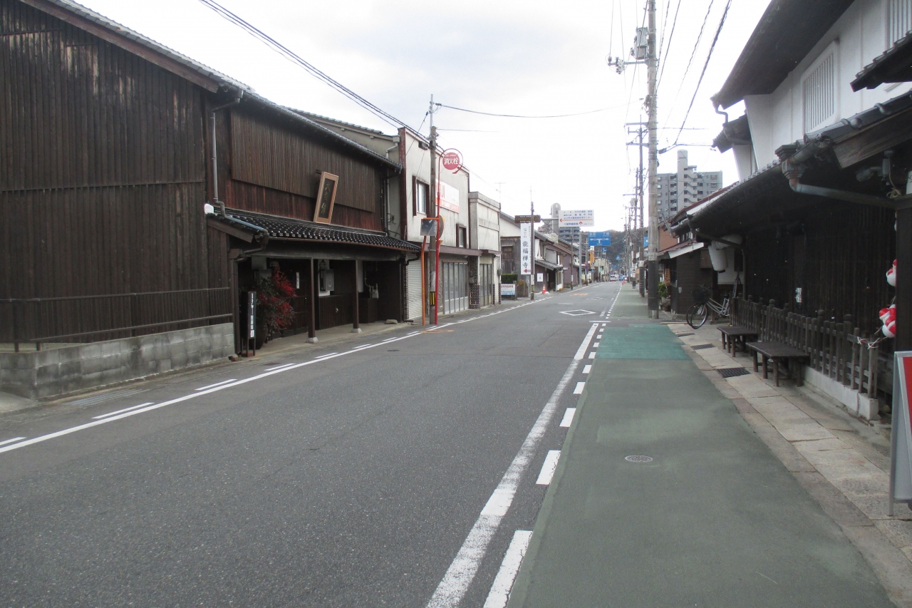 萩往還は、長州藩の拠点である日本海側の萩と、毛利水軍の拠点していた防府を結んでいた街道です。従って、防府には豊富に萩往還跡が残っていますが、途中の経由地である山口市内にもたくさん残っています。現在、山口ふるさと伝承総合センターとなっている前の道路も、萩往還だったところです。街作りされた中ですから、ここでは真っ直ぐな道です。