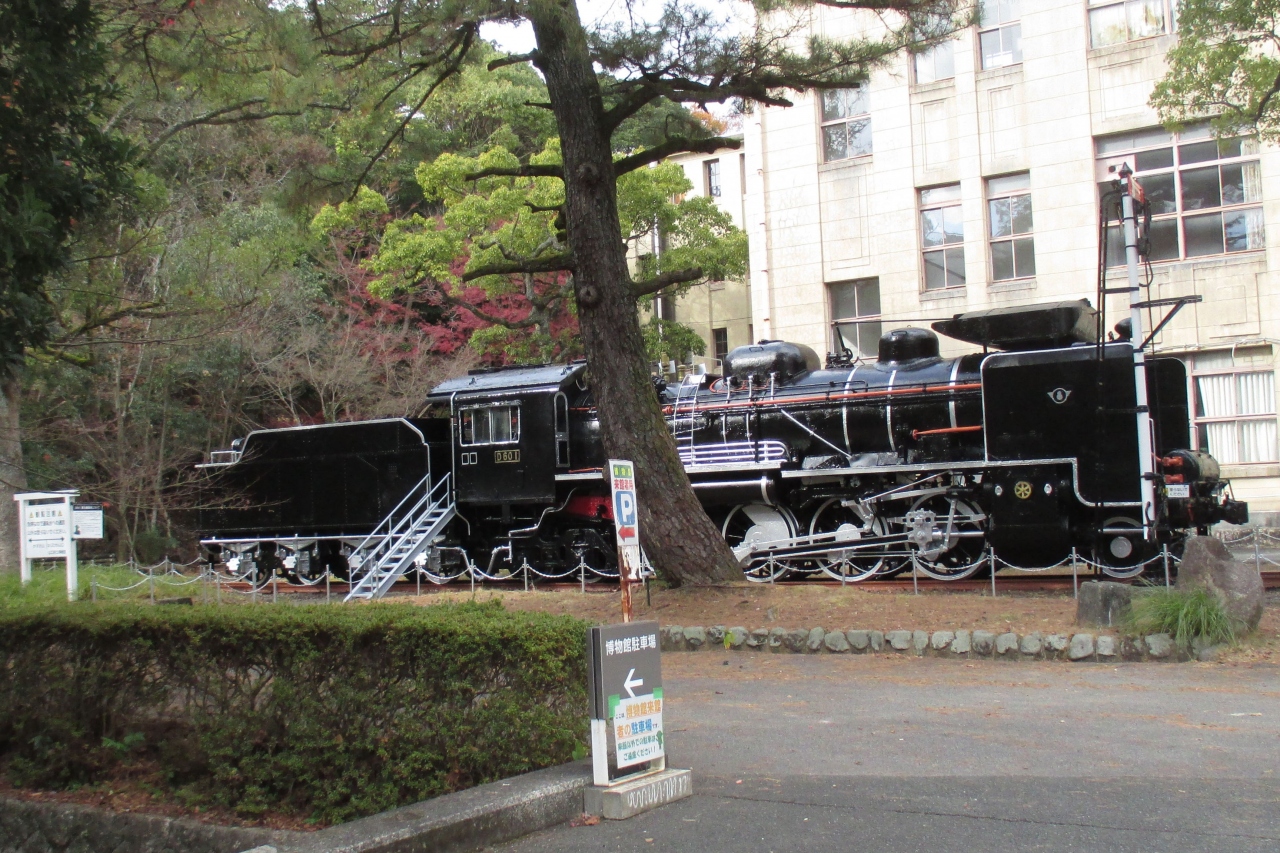 山口県立山口博物館は、亀山公園内にありました。入場制限はしていませんでしたが、床にはず~っと線が引かれていて、間隔を開けて、これに従って進んでくださいとなっていました。幸い?なことに、入場者が少なくて、密になることもありませんでした。普段は、「順路→」で案内されていて、気になったところでは自由に立ち止まったり、ちょっと戻ったりとしますが、それが規制されると、博物館とはこれほど詰まらないものなのだと実感しました。なお、建屋から離れたところに置かれているD60型1号機関車は屋外展示品なのだそうですね。