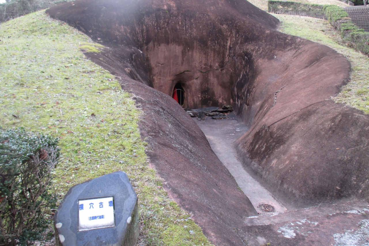 朝田墳墓群は維新百年記念公園の中の弓道場の近くにありました。この墳墓群は木棺墓が最初に造られ、次いで箱式石棺と壷棺墓、その次には周溝墓と石蓋土壙墓へとなり、最後には古墳が造られているとのことです。弥生時代から古墳時代までの長い期間の墳墓群です。それだけ、この一帯は古代人にとって生活のしやすい場所だったということでしょう。