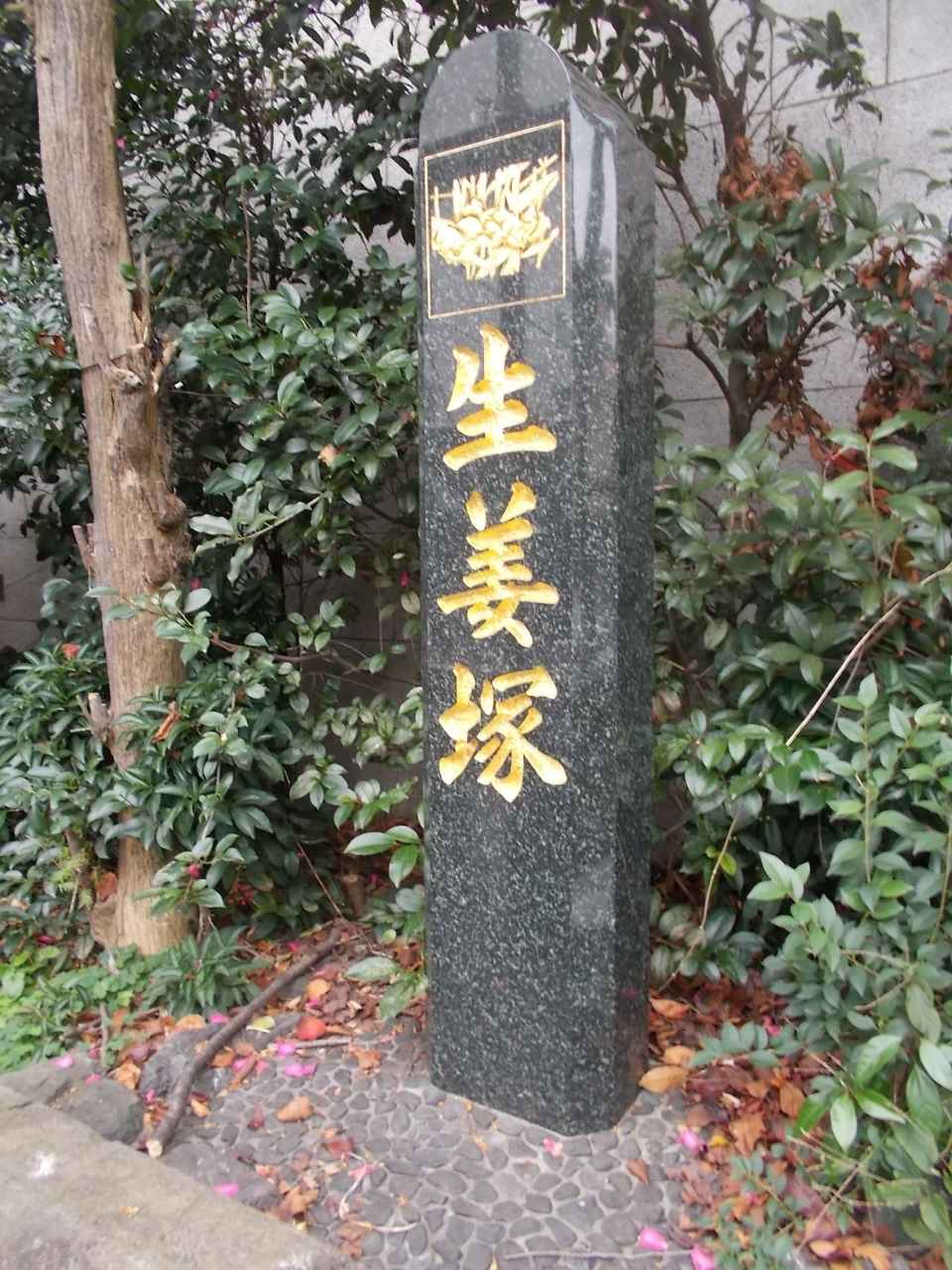 この芝大神宮の生姜塚は大鳥居の脇にあります。JR山手線浜松町駅西口から西北に10分程度の場所にあります。この大神宮は祭事が行われていてその時に甘酒などの他に生姜も売られたようです。そのことがこの塚とつながっているのかは不明ですが珍しいものです。