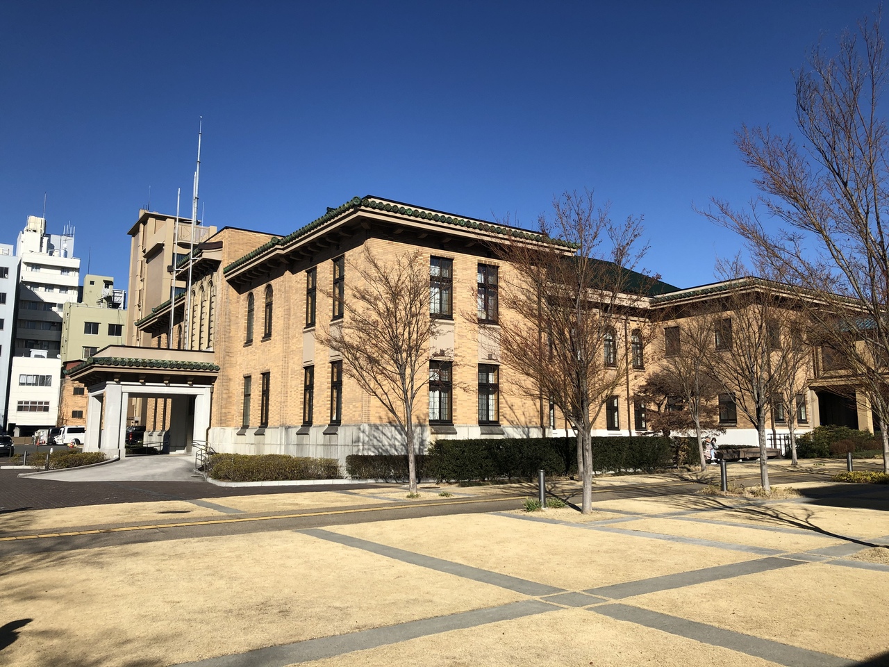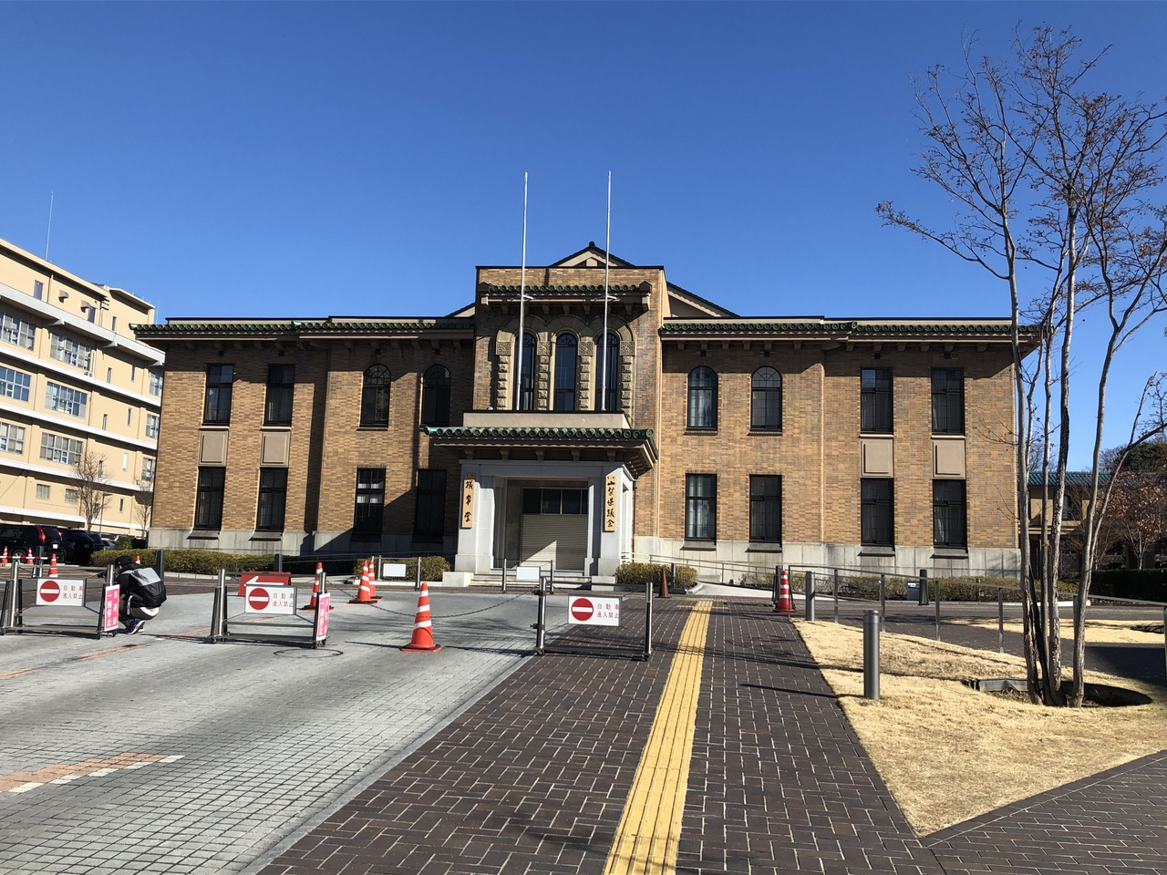 JR甲府駅から徒歩数分。山梨県庁敷地内中央部にある建物。1928年(昭和3年)築造の建物で、2009年(平成21年)山梨県指定有形文化財に指定されています。同じ敷地に建つ県庁別館(旧本館)とともに、甲府城内であった丸の内に、ほぼ同一の工法、素材、様式で建てられたもの。日本の建築家で、建築構造学者であり、耐震構造学の研究を進めた佐野利器が関わったとされています。