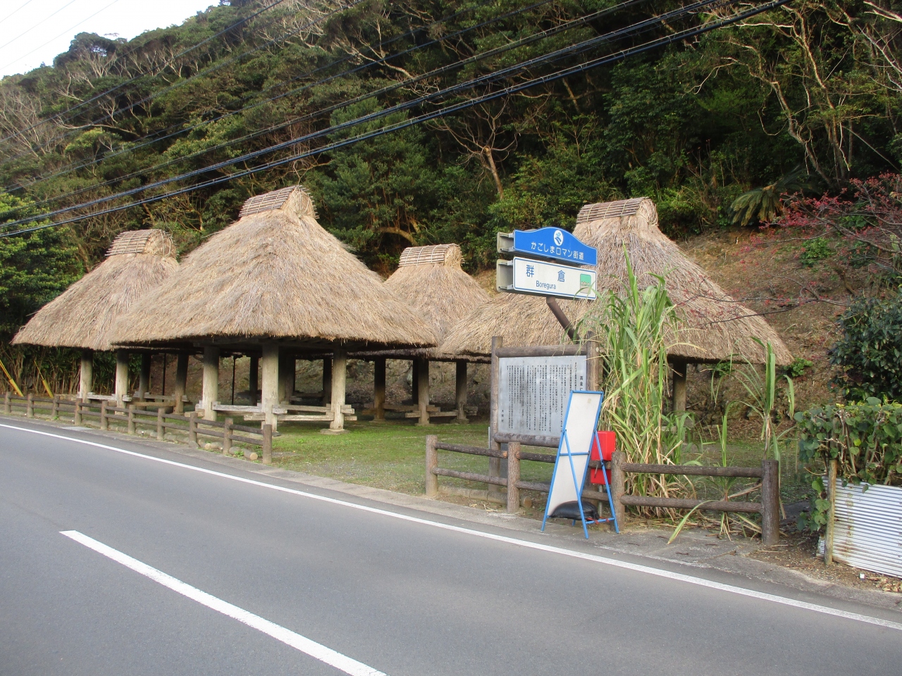 奄美大島の大和村にあります。国道79号線を移動しているときに見かけました。昔、奄美大島で穀物を備蓄するのに利用していた倉庫がそのまま残っていました。複数軒あり、ネズミなどが登れないように高床式になっているのが特徴でした。
