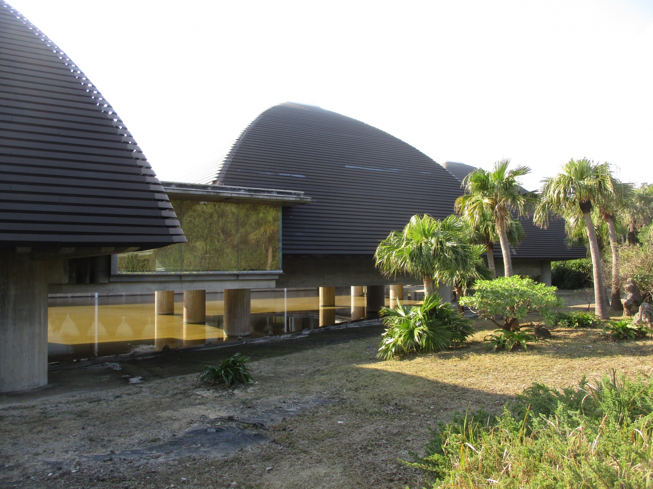 田中一村記念美術館は堀の上に丸い大きな柱で支えられて建っています。東京の美術学校を中退し、50歳で千葉から奄美大島に移住し、亜熱帯の動植物を描いたという彼の歴史が分かりました。絵具代を稼ぐために紬工場で染色工として働いて絵を描き続けたそうです。