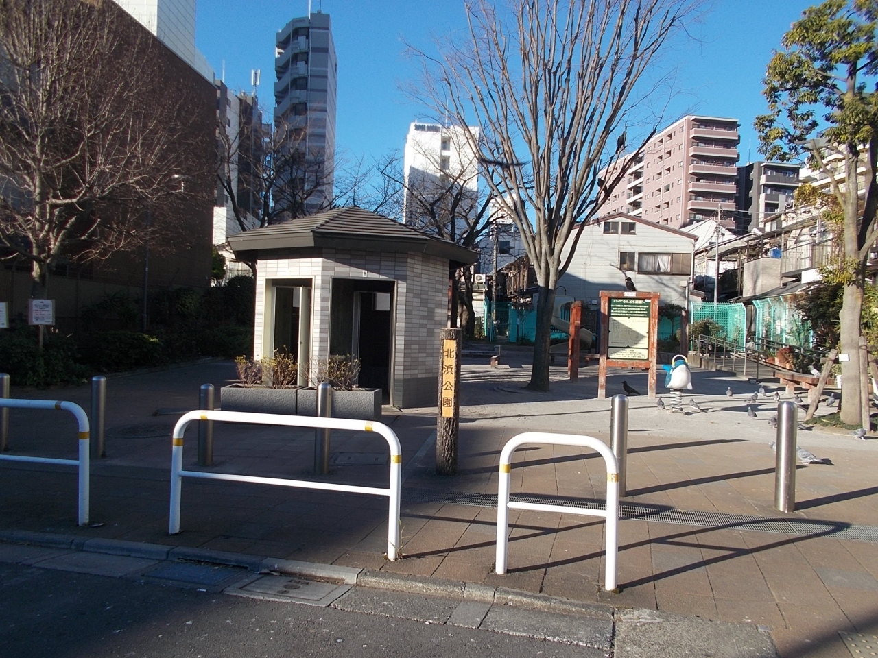 この北浜公園は東海道品川宿である北品川商店街より少し東にあります。目黒川の北側にあります。この公園はうんどう公園として表示されています。遊具での運動もできるようでこども運動公園でしょう。楽しみながら運動ができるのです。大人も使ってみたいです。
