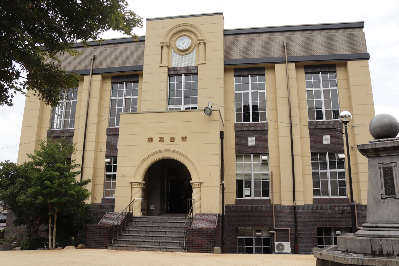 宿場町、今庄宿の古い町並みの中にひときわ目立つ洋館建築です。地元の名士が寄付した建物で、かつては町役場、今は公民館として利用されています。3階建てで左右対称のファサードで、3階には昔ながらのホールが残っているそうです。