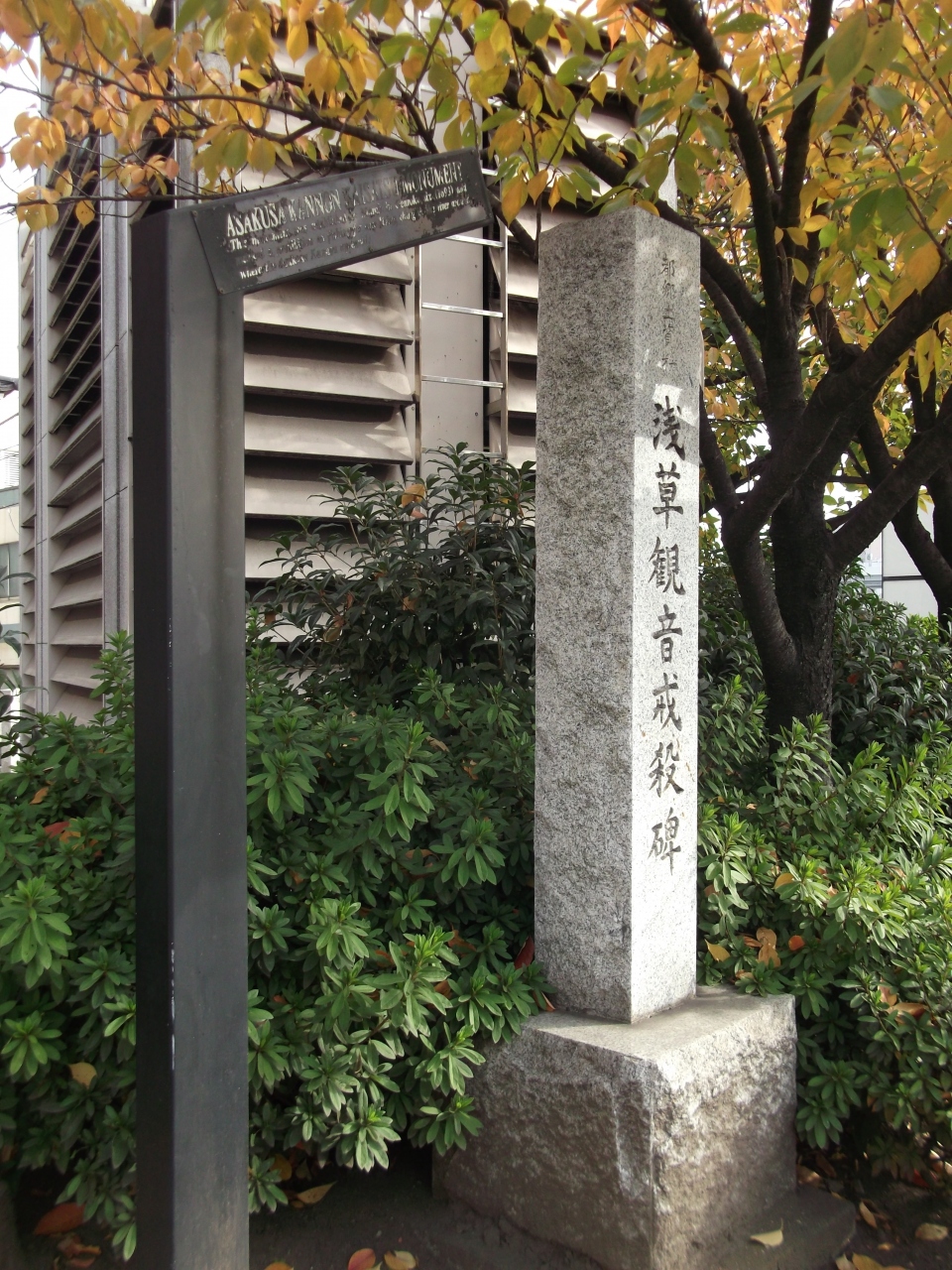 駒形堂のある駒形公園の片隅にこの石碑が建っています。江戸時代にこのあたりで浅草寺御本尊の聖観世音菩薩が見つかったことで、この近辺での魚介の殺生を禁じられた事を示すものだそうです。歴史の1ページを感じることができる場所の一つです。