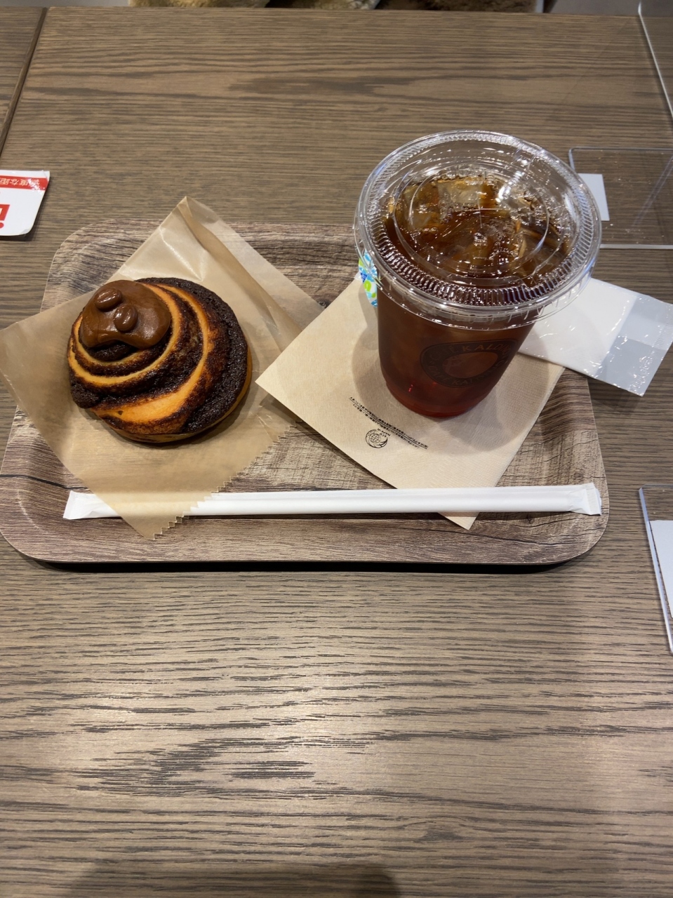 アイスティーと甘いパンでティータイムです。