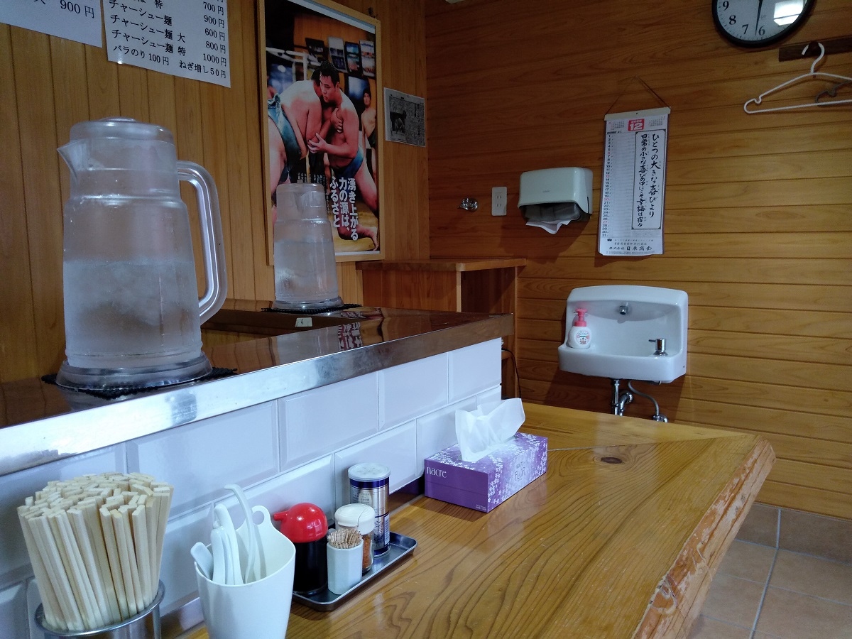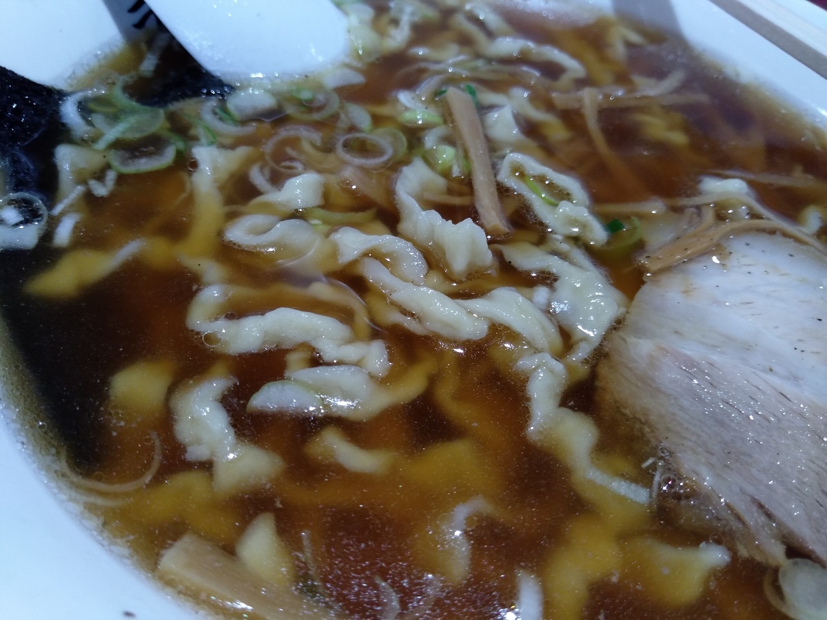 店内はこじんまりとしていてカウンターメイン。メニューもシンプルで注文した中華そばはワンコインの500円とかなりお値打ち。ちなみに注文と同時に代金は先払いのシステムになっている。そしてお待ちかねの中華そばは背脂入れたガツンとくるスープに極太平縮れ麺がマッチしていて美味しくいただける。また夜限定で油そばもあるのでこちらも頼んでみたい。