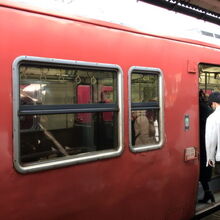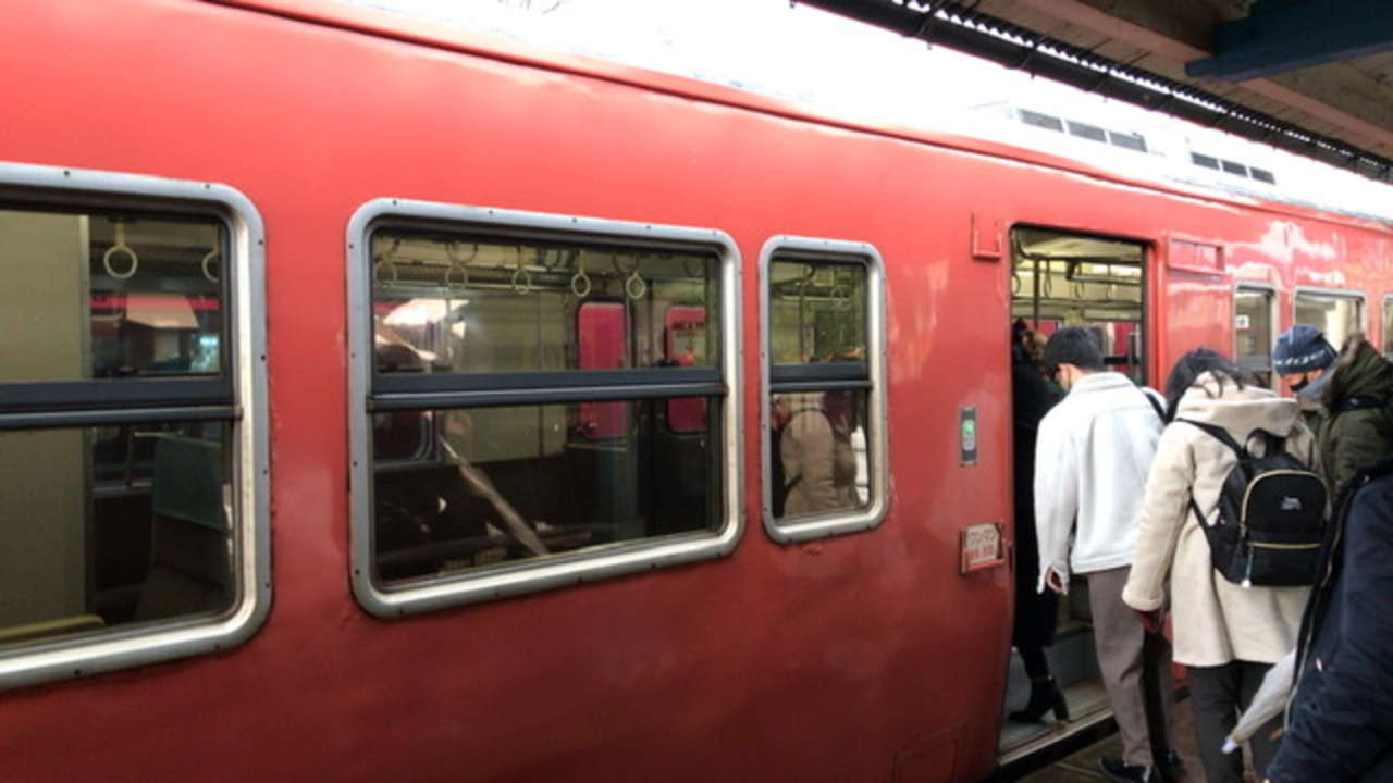 竹野駅から城崎温泉駅まで乗車。クロスシートのディーゼル車、古い車両でしたがトイレありました。