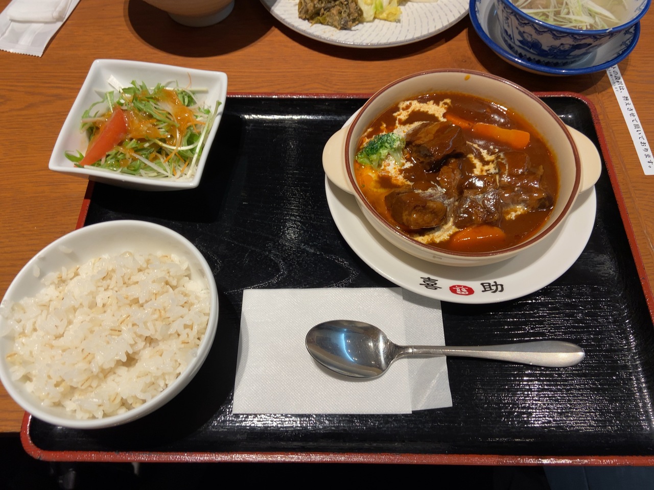 今回は、大きな牛たんがゴロゴロ入ったシチュー定食にしました。