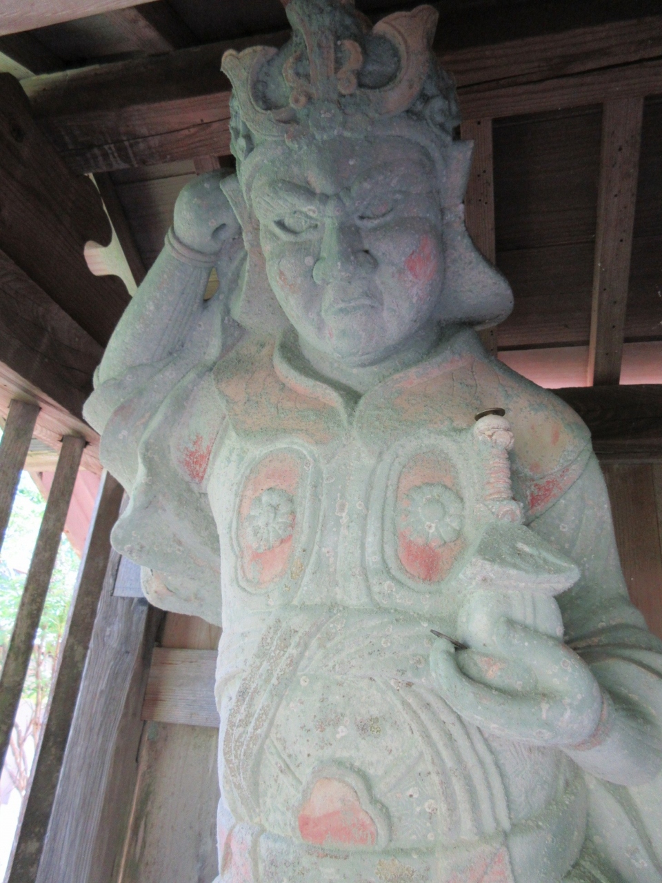 石見銀山にあるお寺で,大田市の指定有形文化財になっています.このお寺の特徴は,石造りの不動明王立像と毘沙門天立像があることで,どちらも山門に安置されています.造られたのは江戸末期とのことで,福光石で彩色が施されているそうです.訪れる人もなく,ひっそりとしていました.