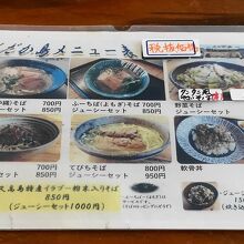 お蕎麦のメニューは、三枚肉・よもぎ・野菜・軟骨・てびちなど。