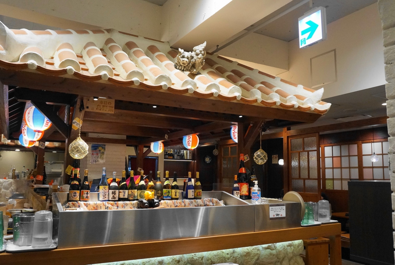 沖縄の古民家風造りの店内は明るく落ち着きのある空間、琉球ムード満点です。