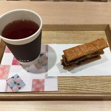 宝塚阪急内にある叶匠寿庵に併設されている甘味処です。狭い空間の中に木を使用した明るくナチュラルな雰囲気です。限られたメニューしかありませんがお値段も手頃だったので、休憩も兼ねて利用しました。セルフサービスなので先に注文と会計を済ませます。みたらし団子も魅力的でしたが2本は多いなぁと、紅茶と栗のミルフィーユにしました。サクッと食感の良いミルフィーユ生地に小豆と栗が上品な味わい、見た目より食べ応えがあり、あっさりとしたダージリンティーとも良く合いました。