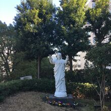 品川駅前から伸びる坂の上にありました。江戸時代、徳川家光がキリシタン50名江戸市中を引き回し、小高い丘で火刑にしたとの看板がありその横に石碑が立っていました。建物は教会ぽかなく、十字架があったので教会等わかりました。