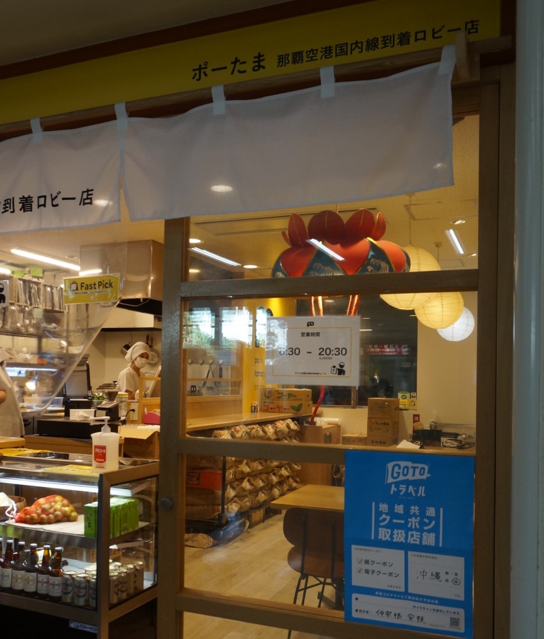那覇空港で行列のできているお店があります、国内線到着ロビーにある「ポーたま」さんです。