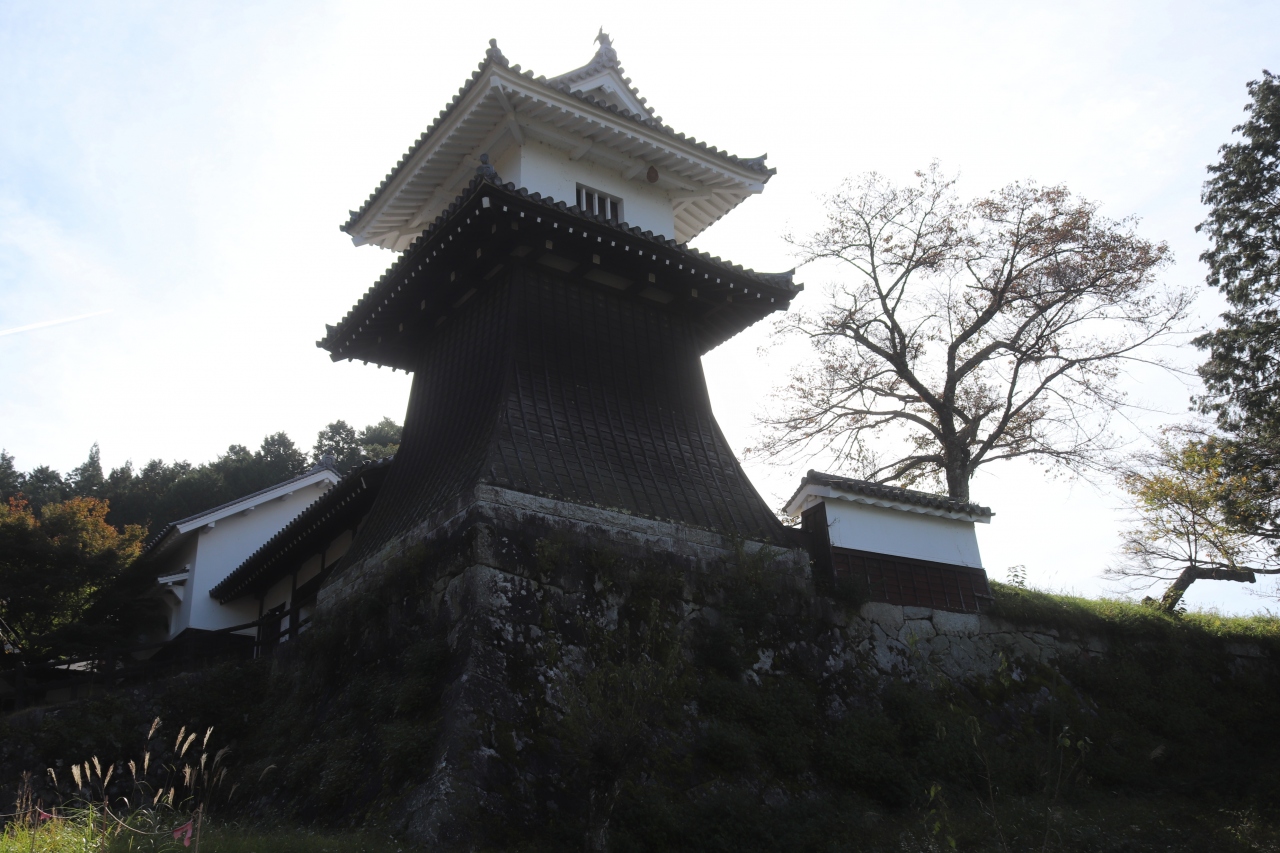 町のはずれの岩村城址の登城口にある太鼓櫓です。復元ではありますが、岩村城には何も建物が残っていないので、隣にある資料館とともに見学ポイントのひとつになっています。山城の岩村城址まではここから登り30分ほどでした。
