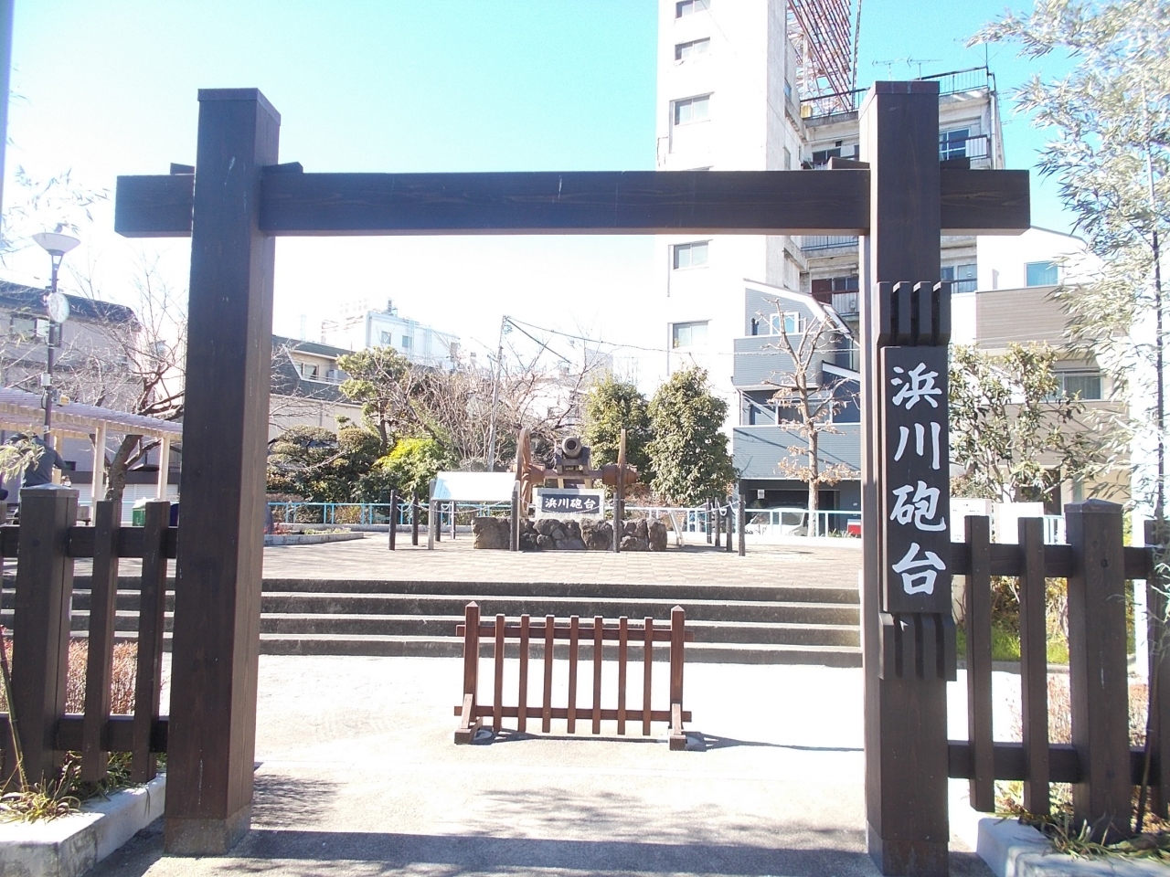 この浜川砲台跡は幕末に東京湾に造られた台場の一環とした土佐藩が幕府の許可をもらいこの地に台場を作ったのです。そこに8門の砲を配置したのです。そのうちの一門が復元されて置かれています。この砲台に坂本龍馬も警備についたといわれています。