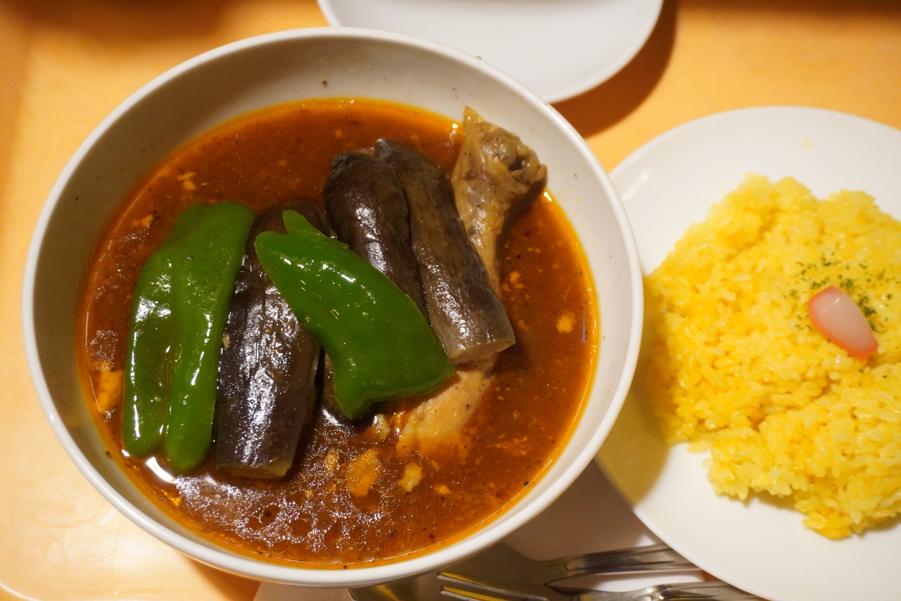 ガネー舎は、新橋駅から少し歩いたエリア。人気のスープカレーのお店です。ライスはサフラン仕上げで黄色い色がきれいで、大きな野菜も含めてなかなかのビジュアルかな。