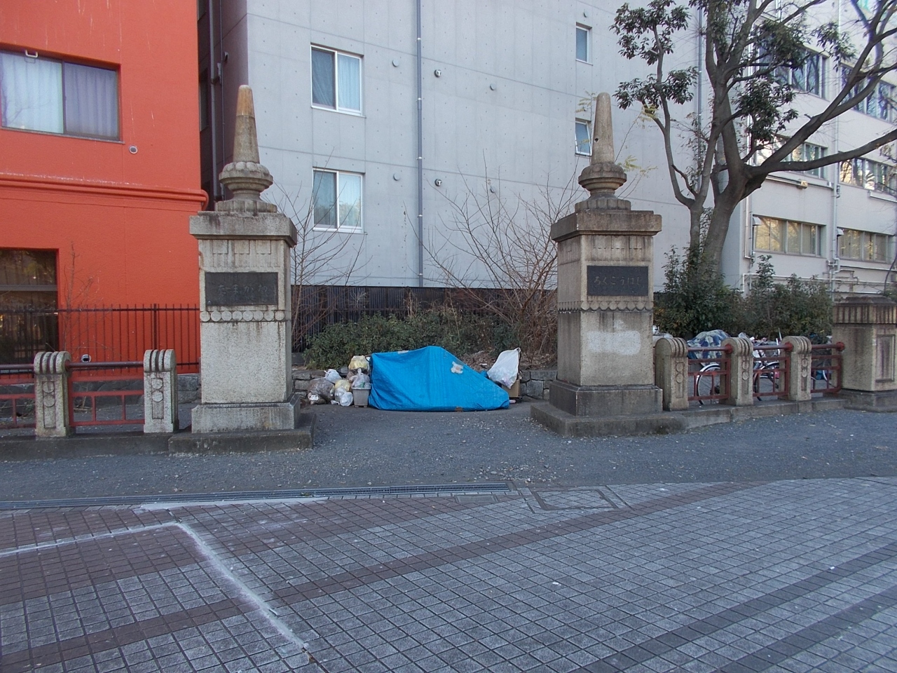 この旧六郷橋親柱は稲毛神社の南側にある稲毛公園にあります。この親柱は大正14年(1925)から昭和59年(1984)まで多摩川に架かっていた旧六郷橋の親柱です。六郷橋は第一京浜の橋で重要ですが流されることが多く何度もつくられています。そのうちのものです。
