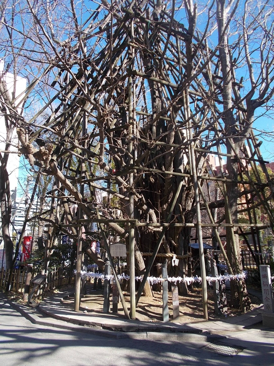 この稲毛神社の御神木大銀杏と十二支めぐりは稲毛神社の境内の一角にあります。まずご神木である大銀杏の大木がそのすごさを見せています。その周りに十二支の像が上部にある橋らが取り巻いています。自分の干支のところで拝みました。