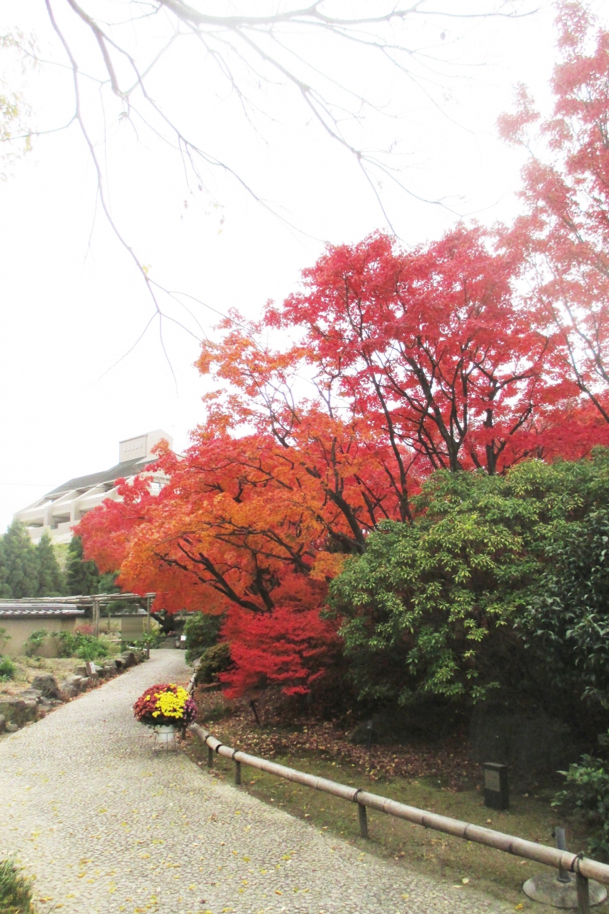 12月に入りましたので、お花はありませんが紅葉がまっ盛りでとてもきれいでした。この神苑花庭園は1987年(昭和62年)の4月に開園したそうです。豊臣秀吉が千利休、博多の豪商・神谷宗湛、石田三成、小西行長などと行なった1587年(天正15年)の「筥崎大茶会」から400年とか、地下鉄箱崎線の箱崎宮前駅開通などを記念したものだそうです。