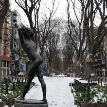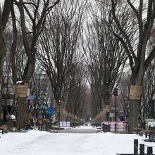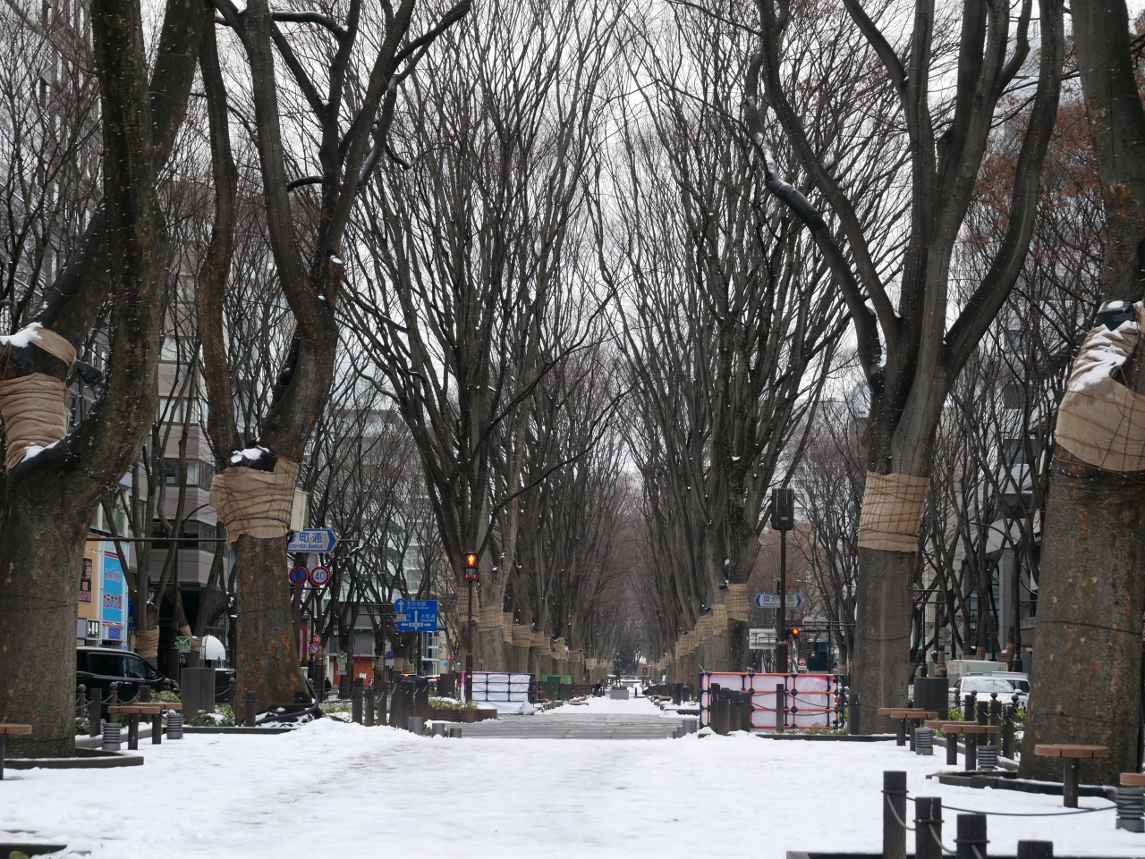 仙台を代表する通りだということで、二列のケヤキ並木の間に遊歩道があります。