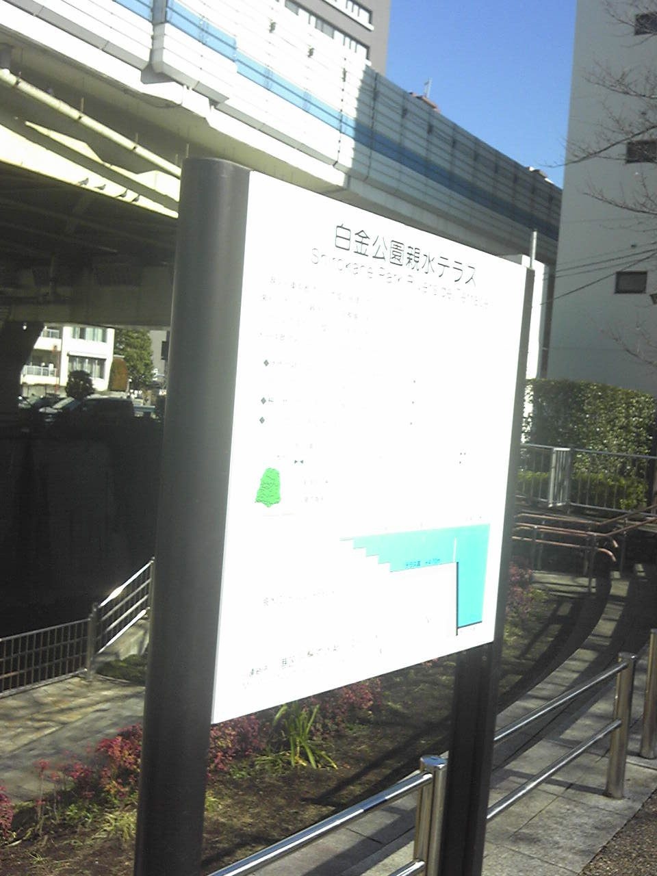 白金というと、東京でも屈指の高級住宅街、というイメージですが、この白金公園は、古川沿い、高速道路のほぼ下にあって、暗く、観光地というほどの規模もありません。古川の川面近くまで下りられる親水公園もありますが、川は汚いですね。