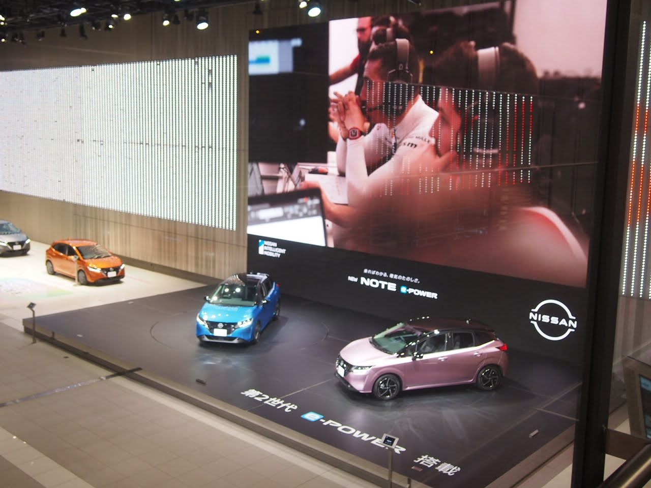 定期的に訪れて車を眺めていると、何やら時代の移り変わりが見えるような気がします。一時、スポーツカーの展示が多かったんですが、今はすっかり姿を消し現在はNOTEを中心としたファミリーカーが主。