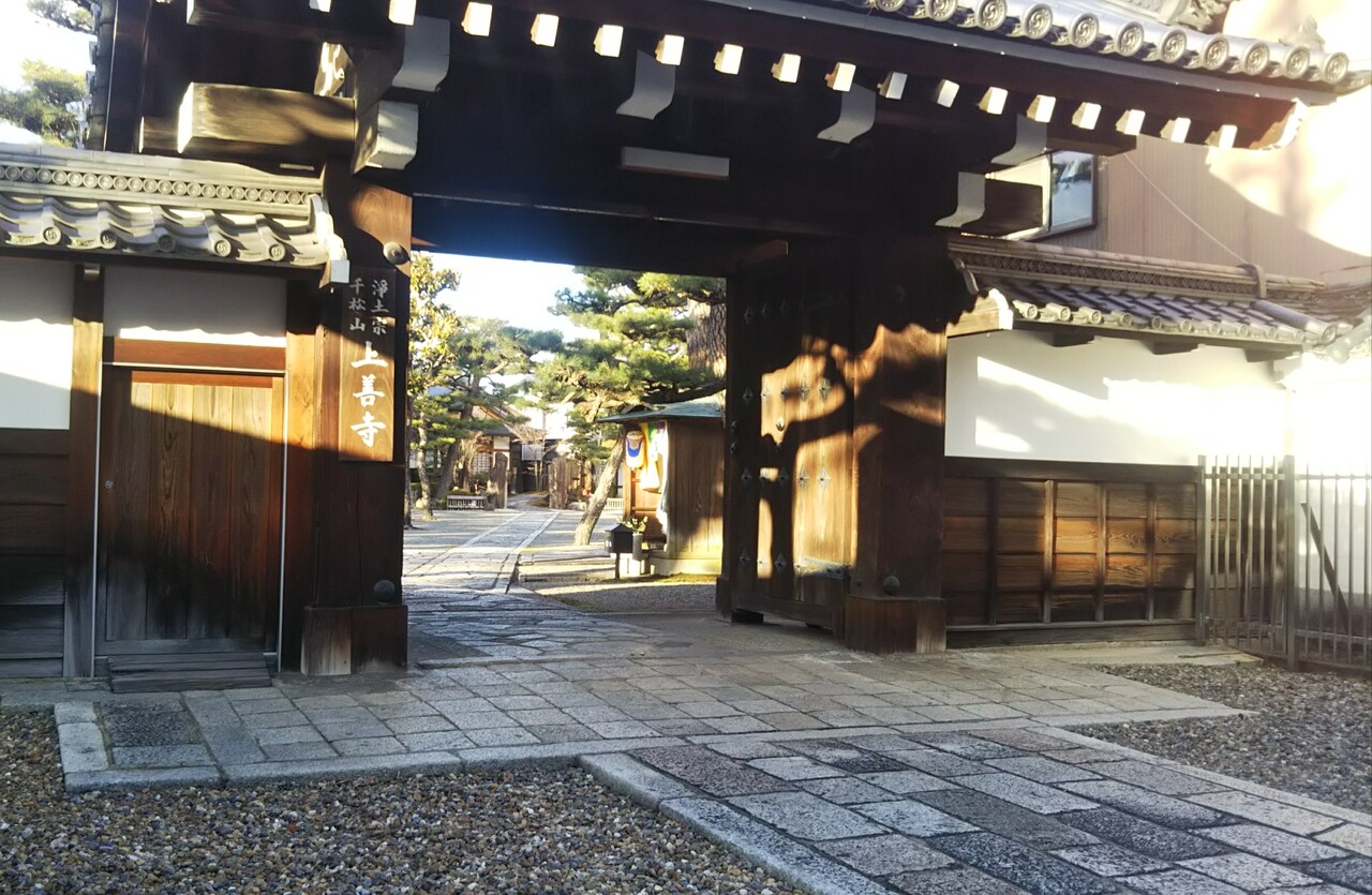 鞍馬口通り寺町東へ進んだとこのお寺だからもう寺町通りの一番北付近のお寺なのかな。入って右奥進んだろころにたくさんの小さいお地蔵さんが並んでた。門のお寺の名前が小さく書かれてるところに浄土宗千松山と書かれてる。門左手標語が書いてあった。