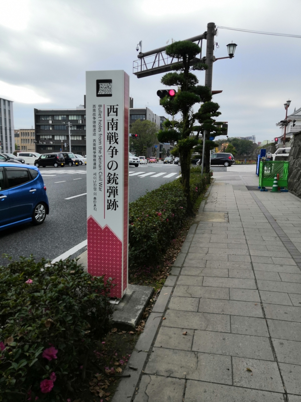 かつて西郷隆盛が設立した私学校の周りを取り囲む石垣に残っている銃弾の跡です。西南戦争の際、政府軍の攻撃を受けた銃弾です。石垣にこんなに打ち込むのがそんなに意味があるのかはわかりませんが、生々しさは伝わってきます。