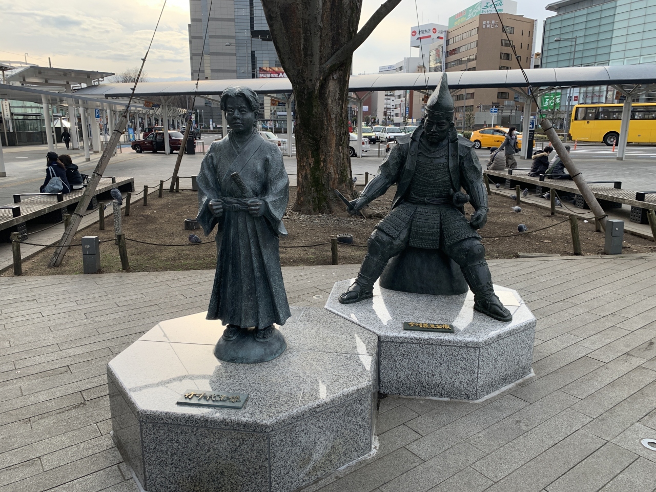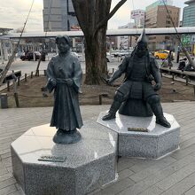 JR静岡駅の北側のロータリーにある家康幼少期の竹千代君の像が立っています。