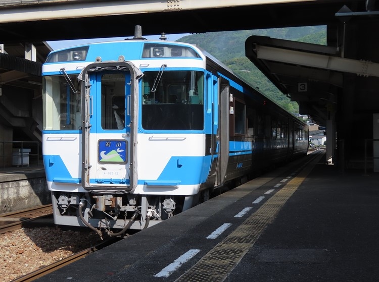 何度か四国を訪れていますが、最後に乗り残したのが徳島線でした。徳島線を走っている剣山は国鉄時代から走っているキハ185系です。丈夫な車両で九州でもいまだ現役なようです。徳島・阿波池田の所要時間は1時間15分ほど。吉野川沿いの路線です。