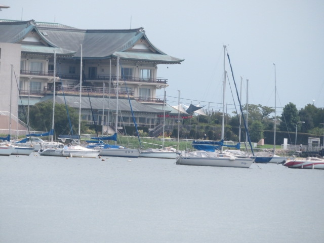 こちらは昭和初期建築のホテルを保存改修したもので、お城のような外観をしていてなかなかの迫力がある建築物です。柳が崎湖畔公園は琵琶湖の突起のようになっていて、こちらのびわ湖大津館は、その突起部分にあるので、結構遠くからでも見えます
